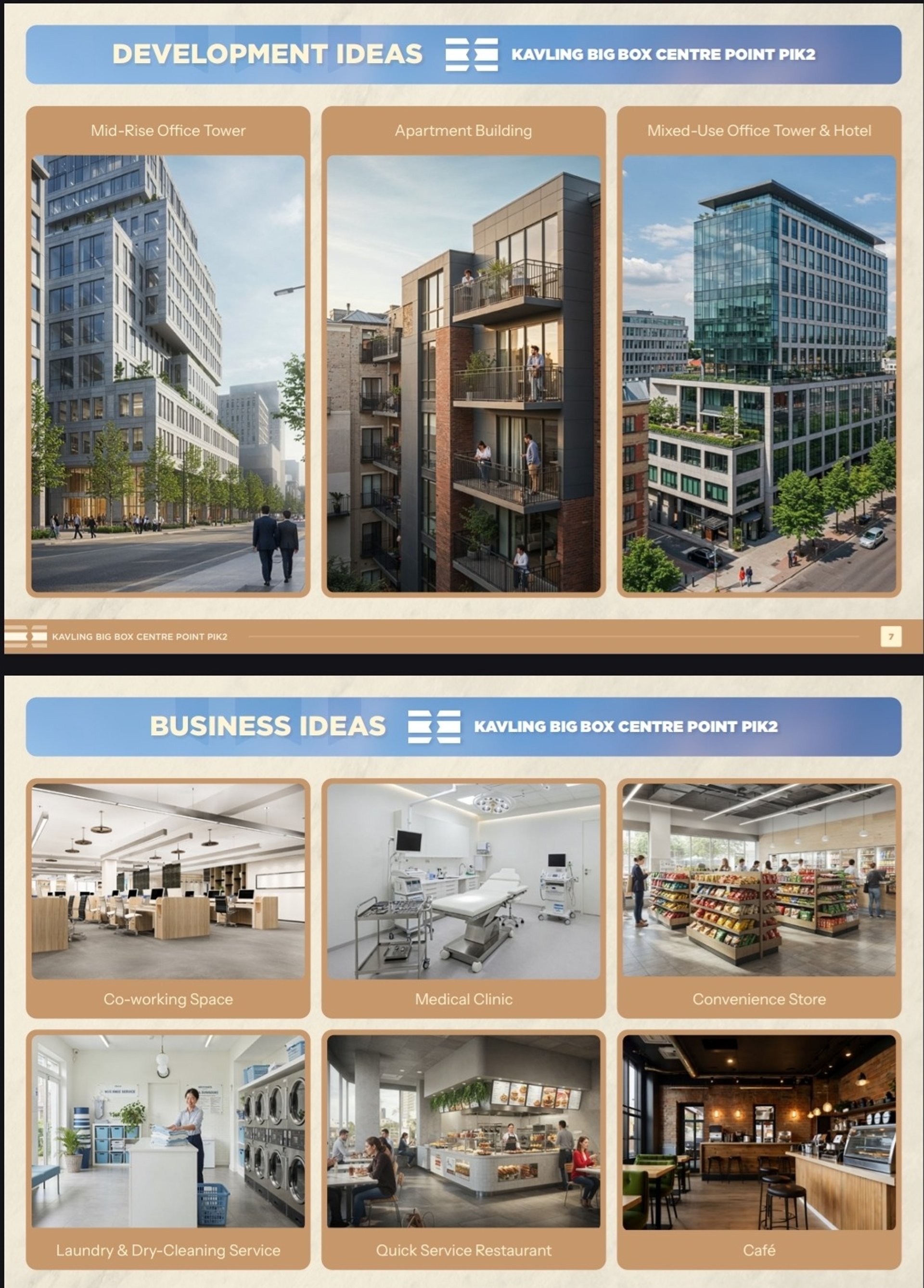Potensi bisnis tinggi: Dengan ukuran besar dan lokasi strategis, Big Box PIK2 sangat cocok untuk bisnis besar seperti showroom otomotif, gedung kantor, hotel, atau bahkan pusat retail.