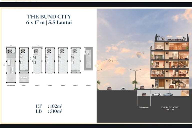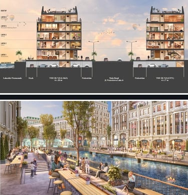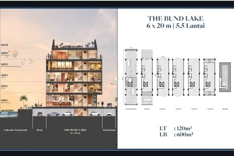 Ada area pedestrian, view danau, serta rooftop untuk banyak unit.