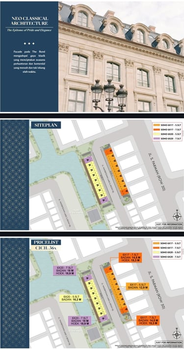 Mengusung arsitektur neo-klasik terinspirasi dari The Bund di Shanghai.