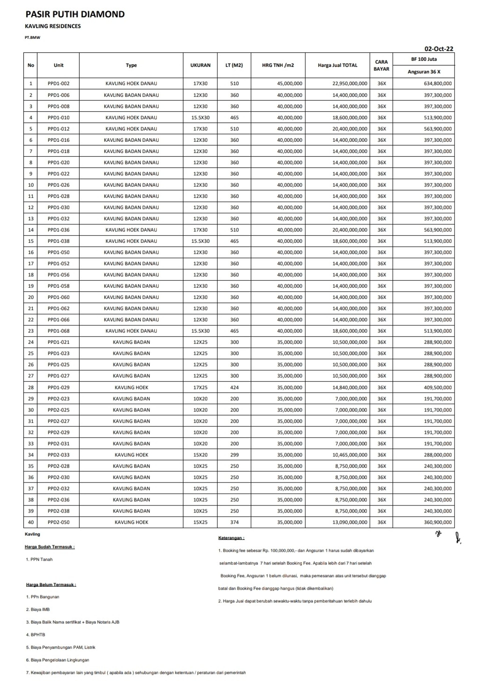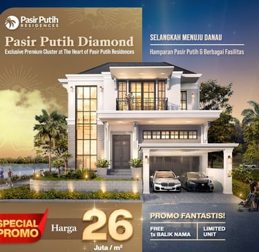 “Cluster kavling residential” yang disebut sebagai bagian dari “Pasir Putih Residences” – yang artinya Anda membeli kavling (tanah) untuk kemudian membangun rumah sesuai regulasi cluster.