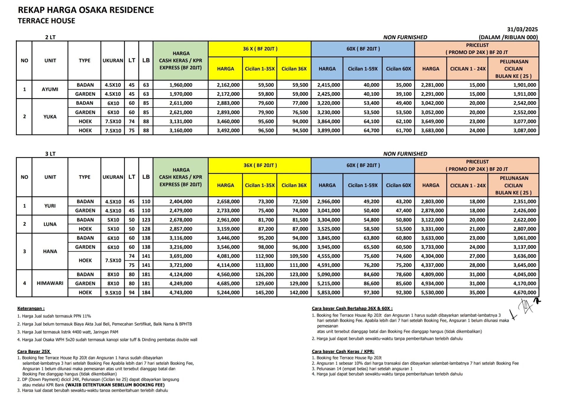Juga terdapat unit 2 lantai untuk tipe lebih kecil / baru launching.