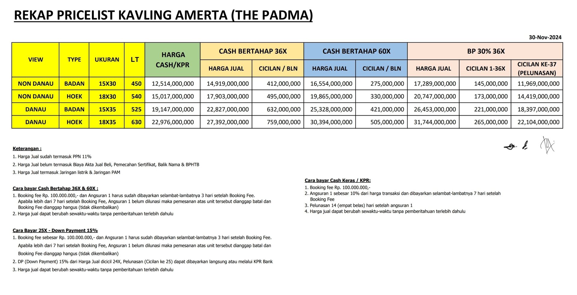 Unit Kavling rumah tinggal (cluster) yang ditawarkan: