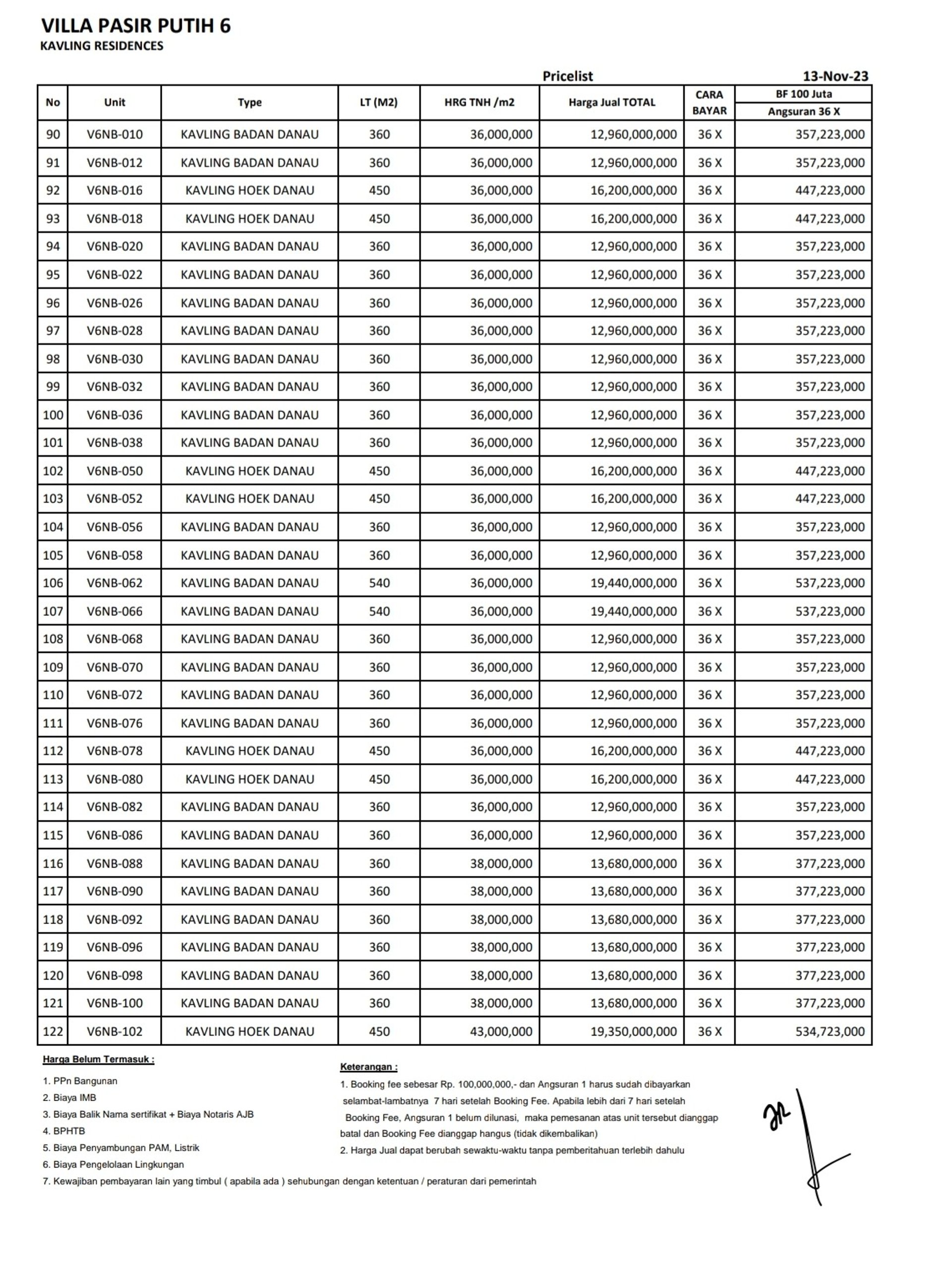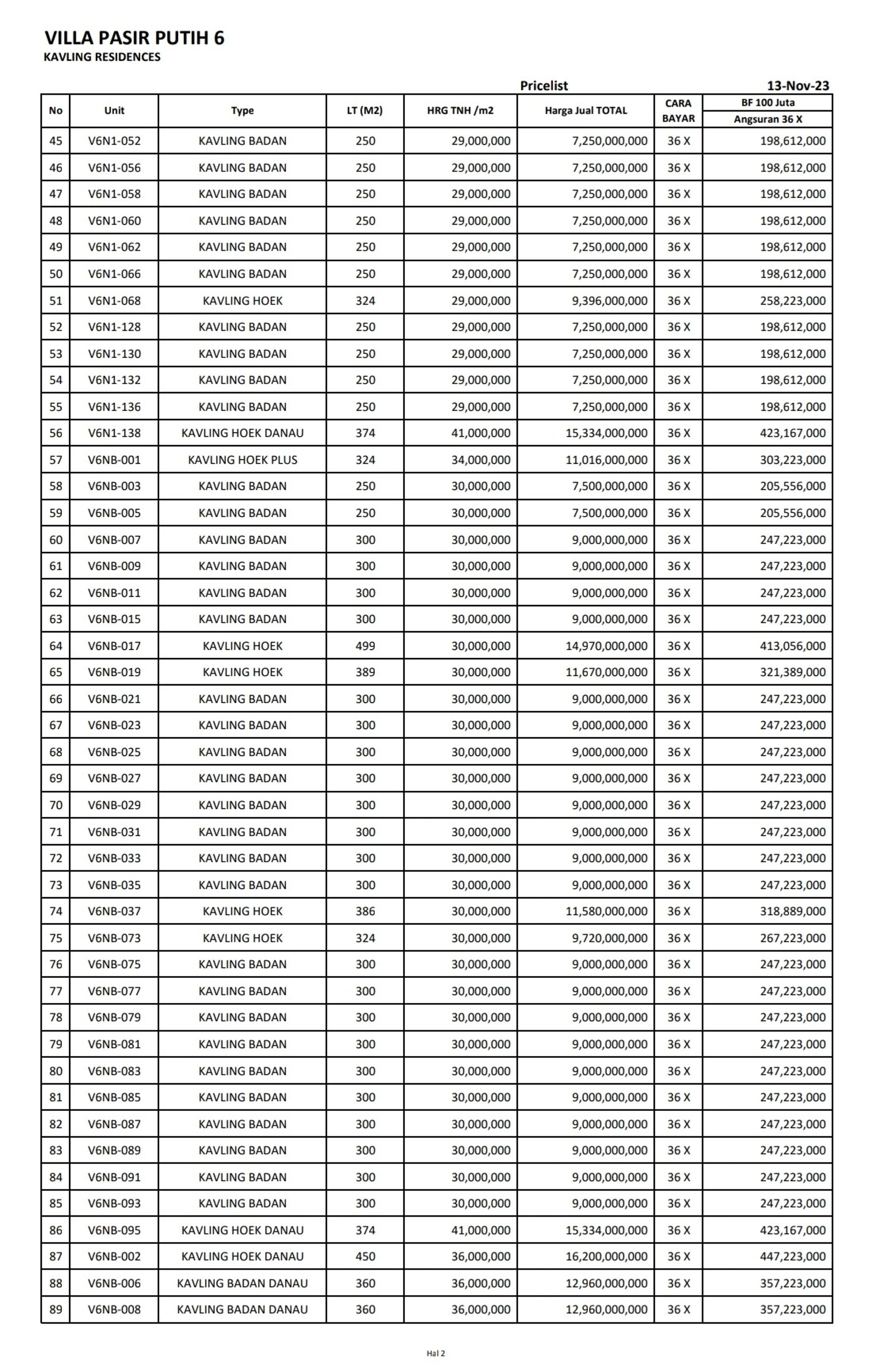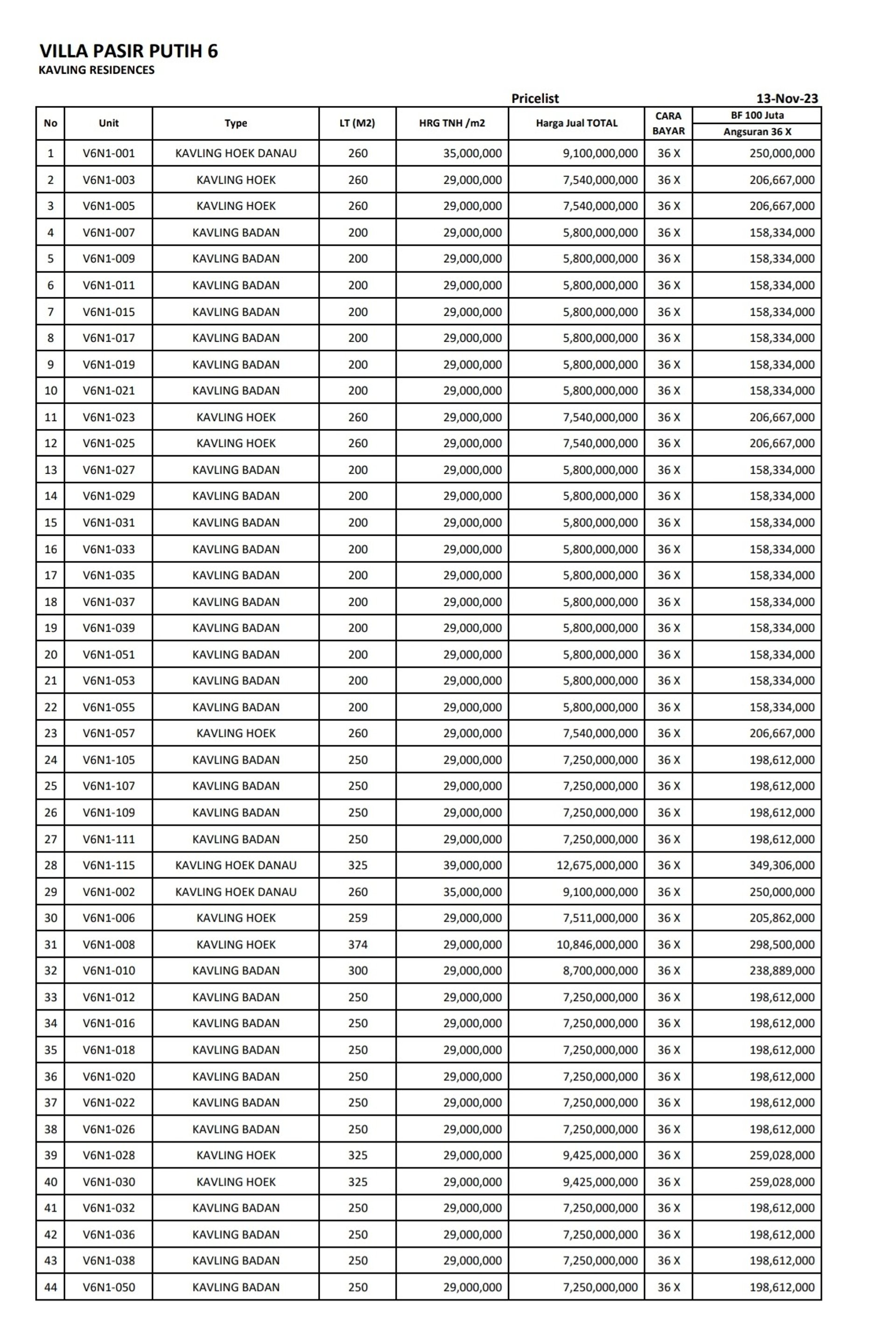 Ada beberapa ukuran kavling yang ditawarkan di Villa Pasir Putih 6: