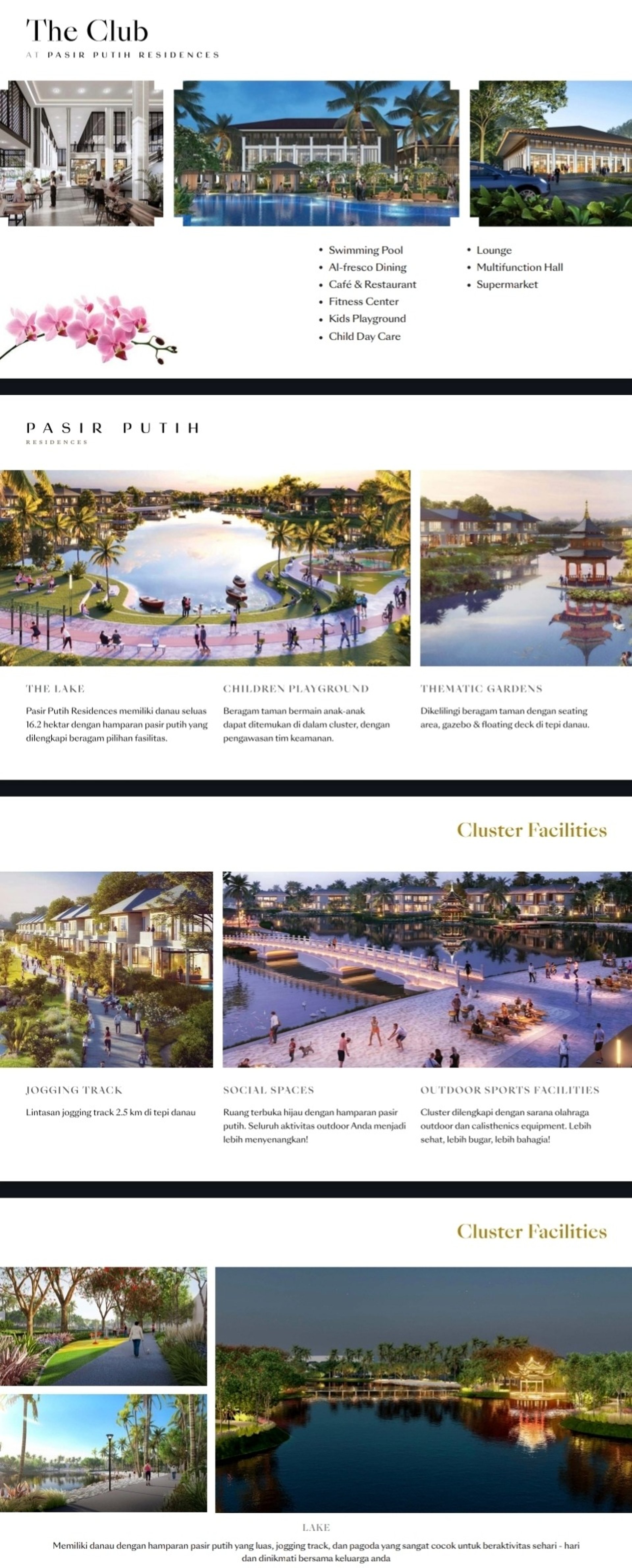 Fasilitas: jogging track di tepi danau (±2,5 km) dan mangrove, clubhouse seluas ~1,5 ha.